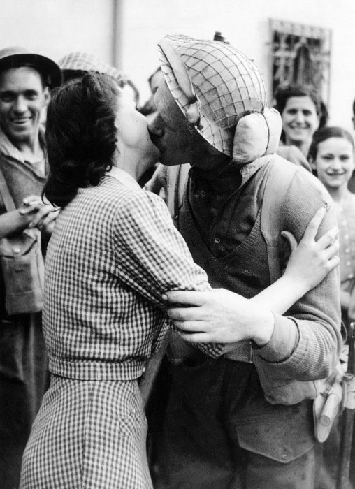 ...... la musica è assordante; c'è gente che và e viene. Gli americani, belli, giovani, rumorosi, vivi, hanno divise eleganti, pulite e le mani piene di un cibo introvabile: il cioccolato".